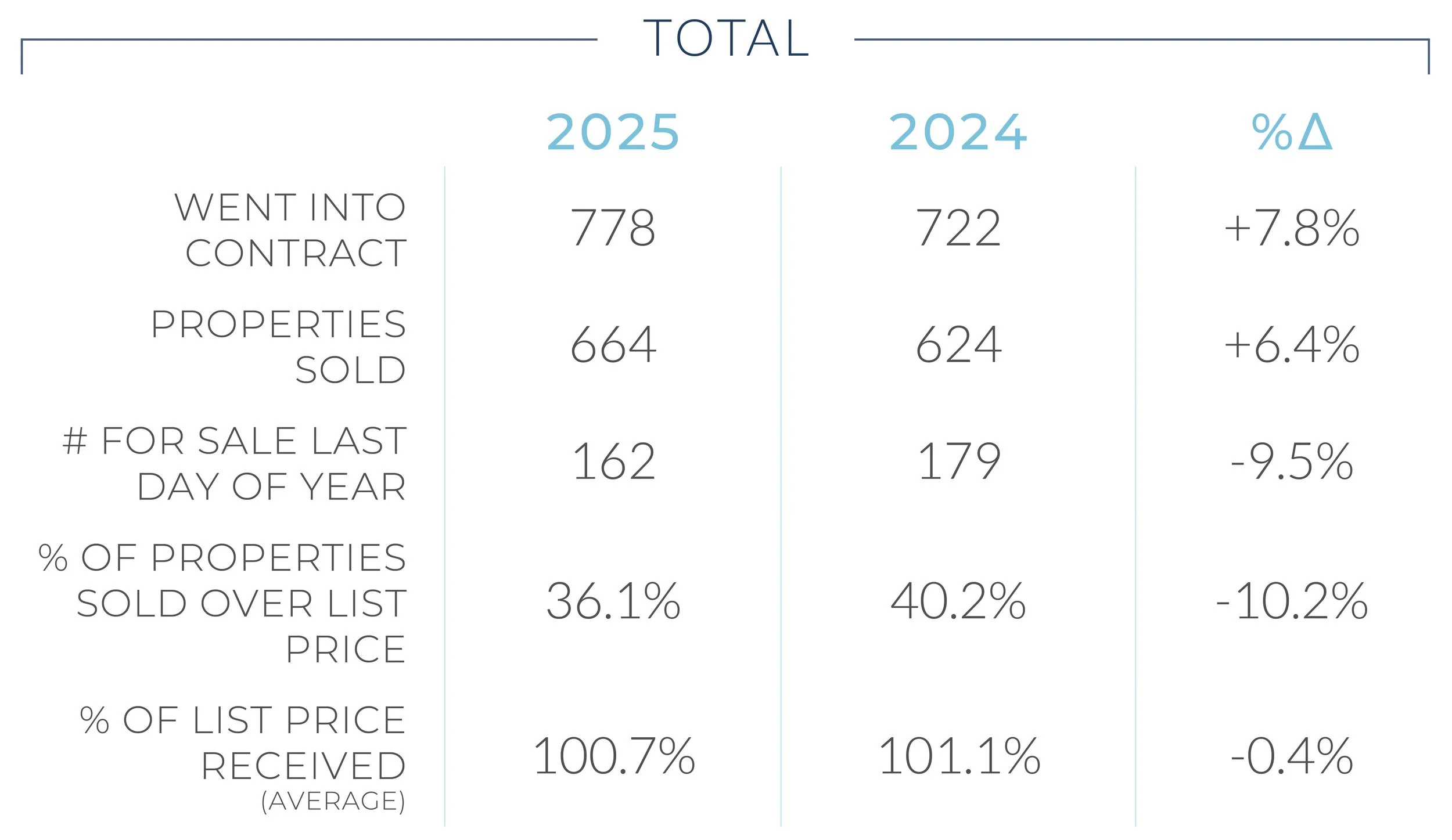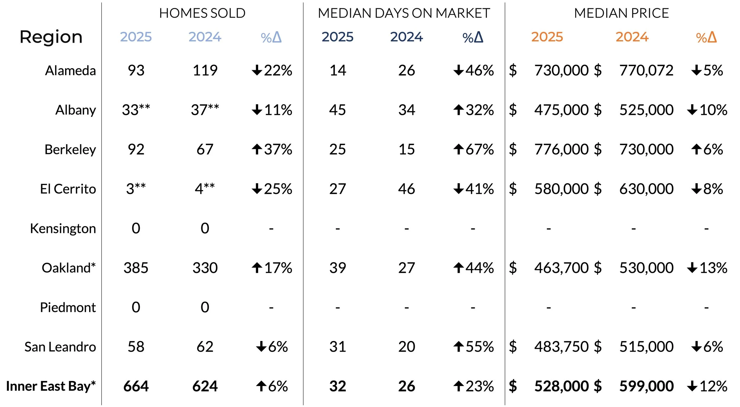 Below is a Year in Review for our Inner East Bay market in 2025. It’s always fascinating to look back at the year we have just completed, and see how the data matches up with our personal experience with our clients.