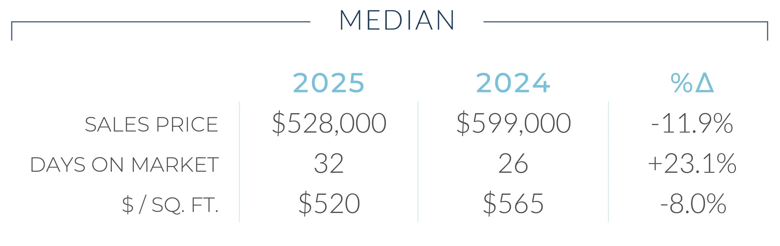 The condominium market told a different but encouraging story. Prices adjusted meaningfully in 2025, with the median condo price falling 11.9 percent to $528,000. This reset improved affordability and helped unlock demand. Contracts rose 7.8 percent and sales increased 6.4 percent year over year, signaling renewed momentum after a slower period. While condos took slightly longer to sell, more than a third still traded above asking, and sellers generally achieved full list price, reflecting healthy absorption for well-priced units.