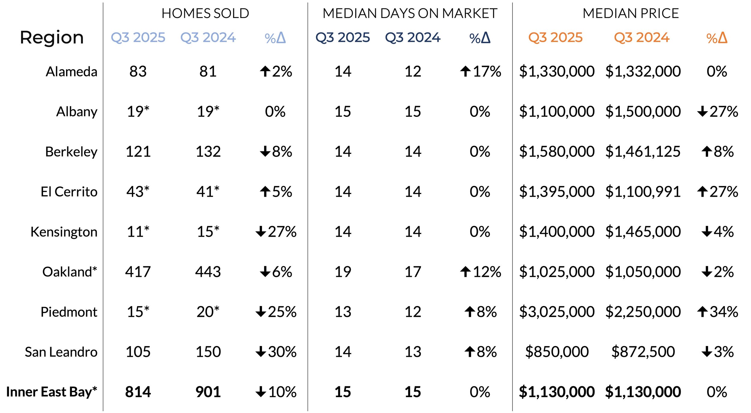 Although the number of new contracts dipped 5.4%, the overall picture remains highly encouraging. Limited supply, steady buyer confidence, and competitive offers continue to define the East Bay market heading into winter.